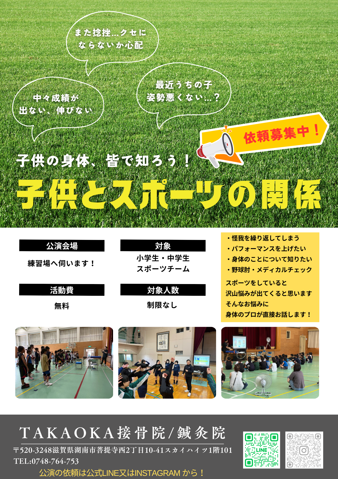 TAKAOKA接骨院/鍼灸院 〒520-3248 滋賀県湖南市菩提寺西2丁目10-41 スカイハイツ1階101号室 ℡0748-764-753 |